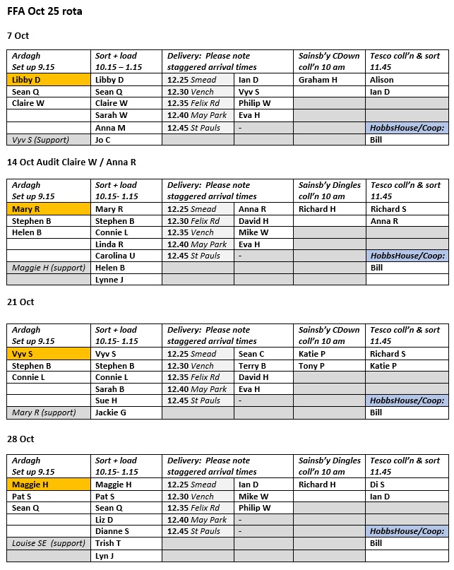 Rotas for volunteer duties are posted here monthly